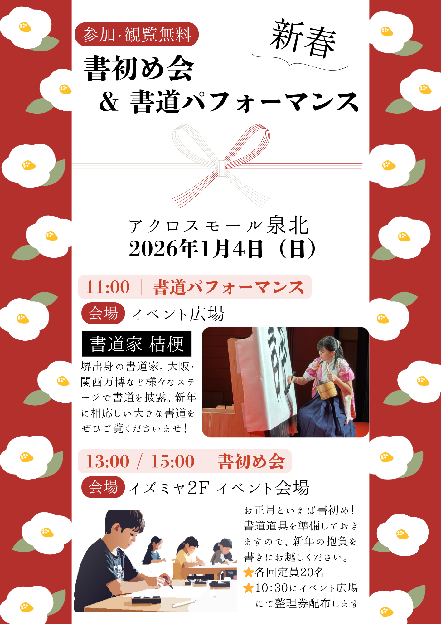・13:00〜 / 15:00〜 書初め会(会場:イズミヤ2Fイベント会場)