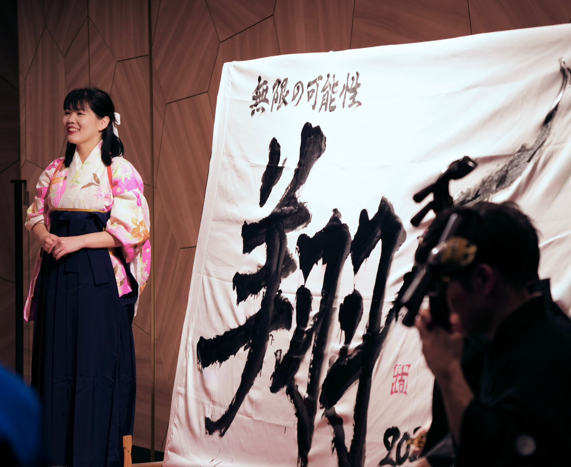 会場に響く三味線の美しい音色に包まれながら書く時間は、緊張感の中にも心地よさがあり、非常に印象深いひとときとなりました。