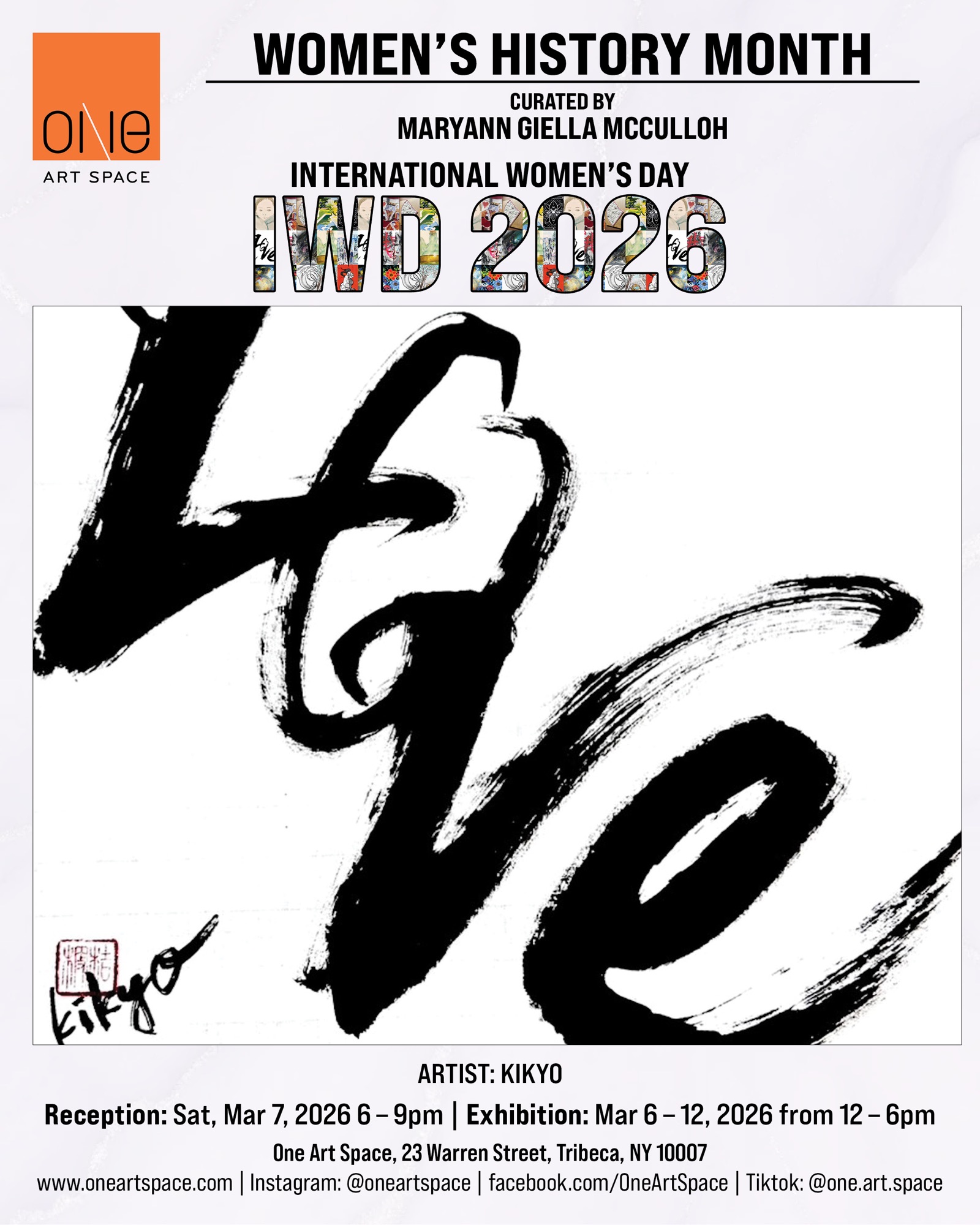この度、ニューヨークのギャラリー「One Art Space」にて開催される、国際女性デーを記念した展覧会に書作品を出品いたします。
