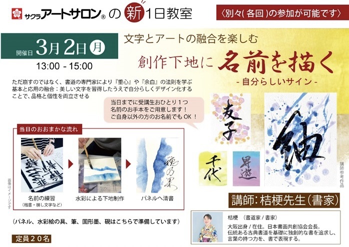 「文字とアートの融合を楽しむ 創作下地に名前を描く ― 自分らしいサイン ―」