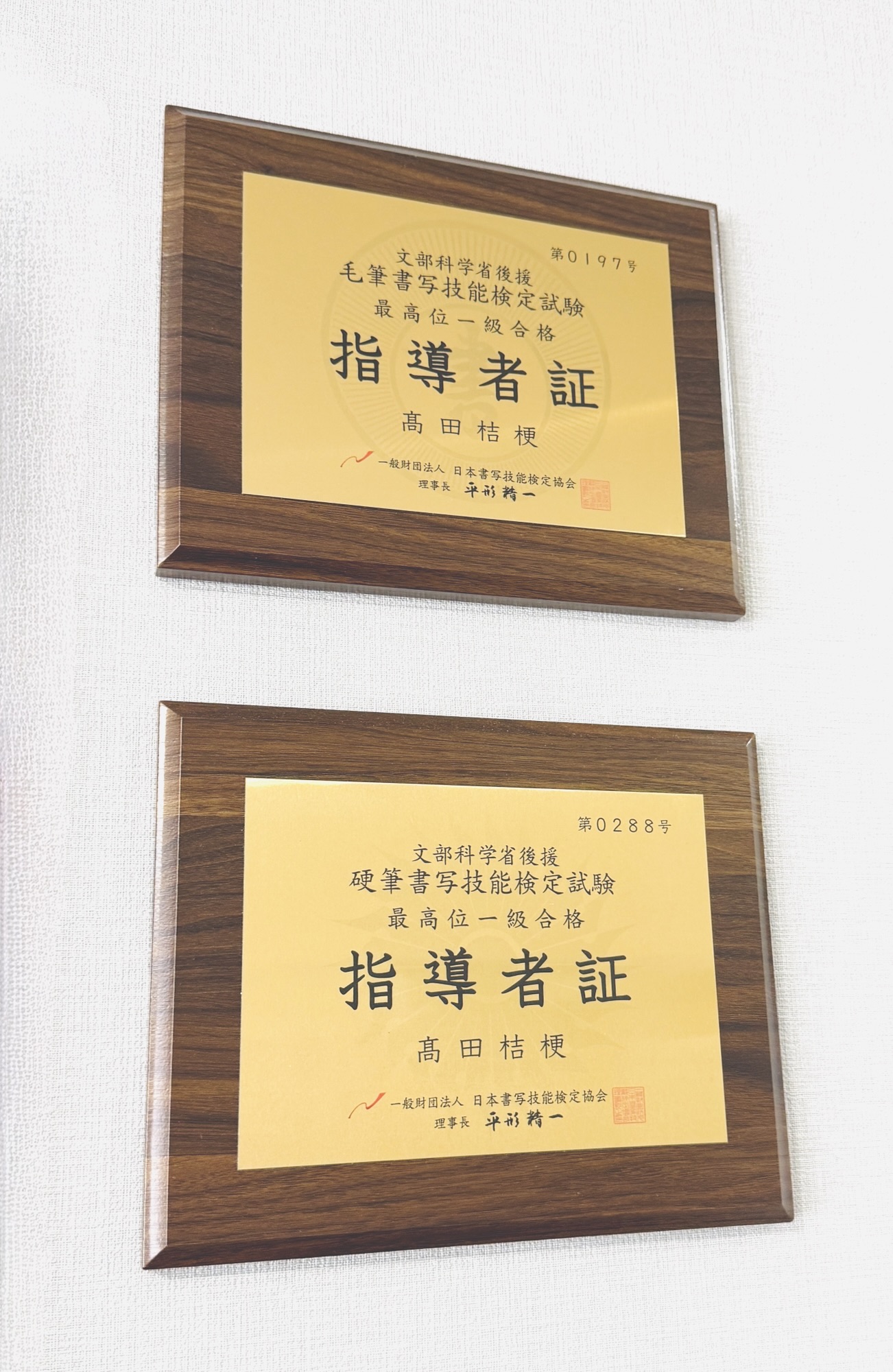 文部科学省後援の硬筆書写技能検定、毛筆書写技能検定ともに一級を取得しております。